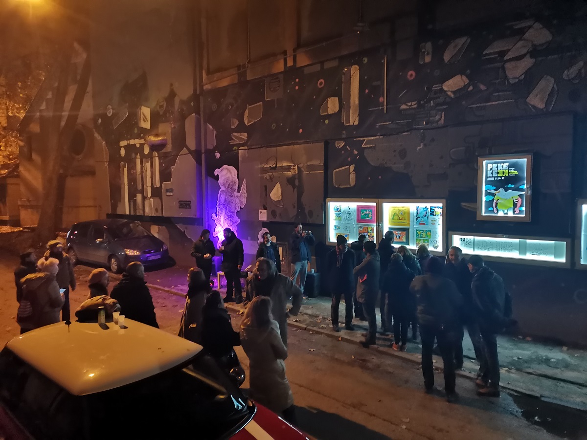 Prohladno decembarsko veče u Balkanskoj ulici, ali ipak sjajna atmosfera i dobra energija prisutnih tokom otvaranja. Nakon dve uspešno održane izložbe koje su izazvale veliko interesovanje, stigla je i nova postavka. Crteži Pekekea su uglavnom rađeni na času likovnog, za nastavničkim stolom, spontano, kad je bilo uslova za to.