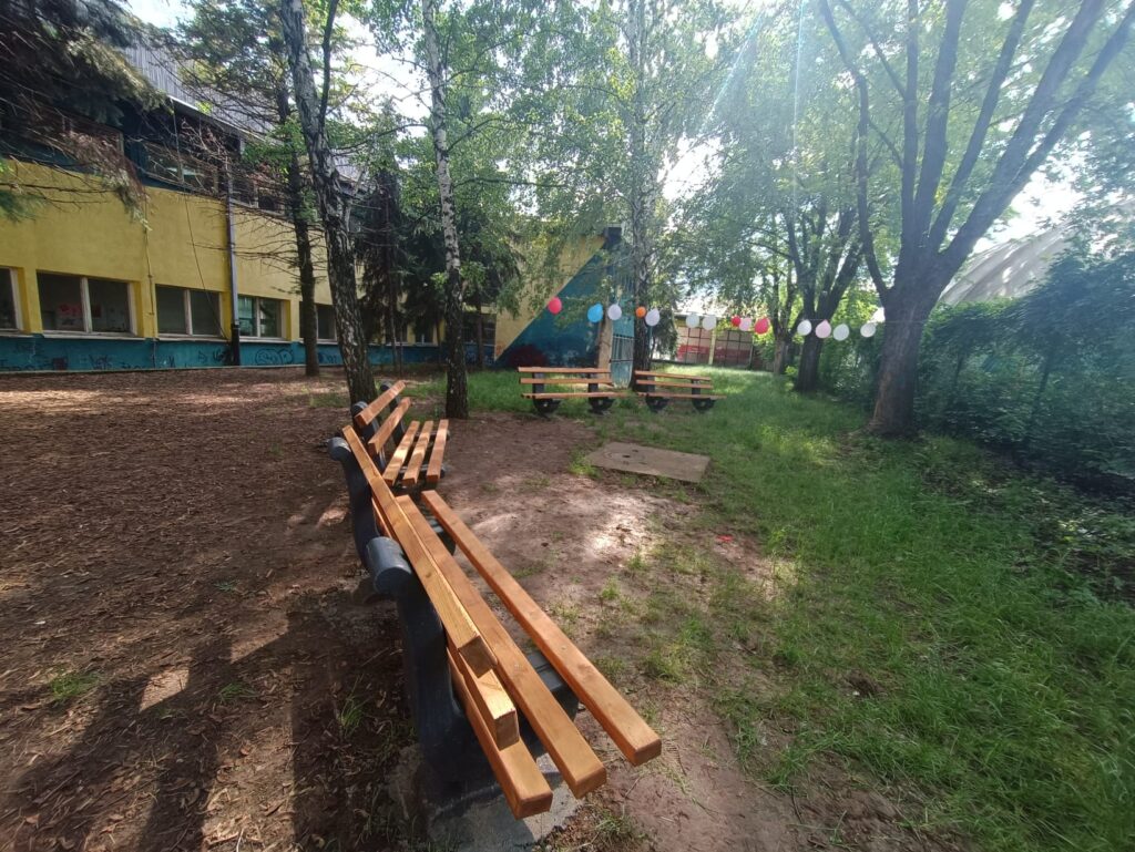 Наставници су набавили клупе које су постављене у дворишту школе и уредили простор тако да боравак напољу буде пријатан и безбедан. Ово је сјајан начин да се ученицима омогући да више буду у додиру са природом и уче ван учионице. Осим тога, ово место доступно је свим грађанима локалне заједнице који и сада проводе време у школском дворишту.