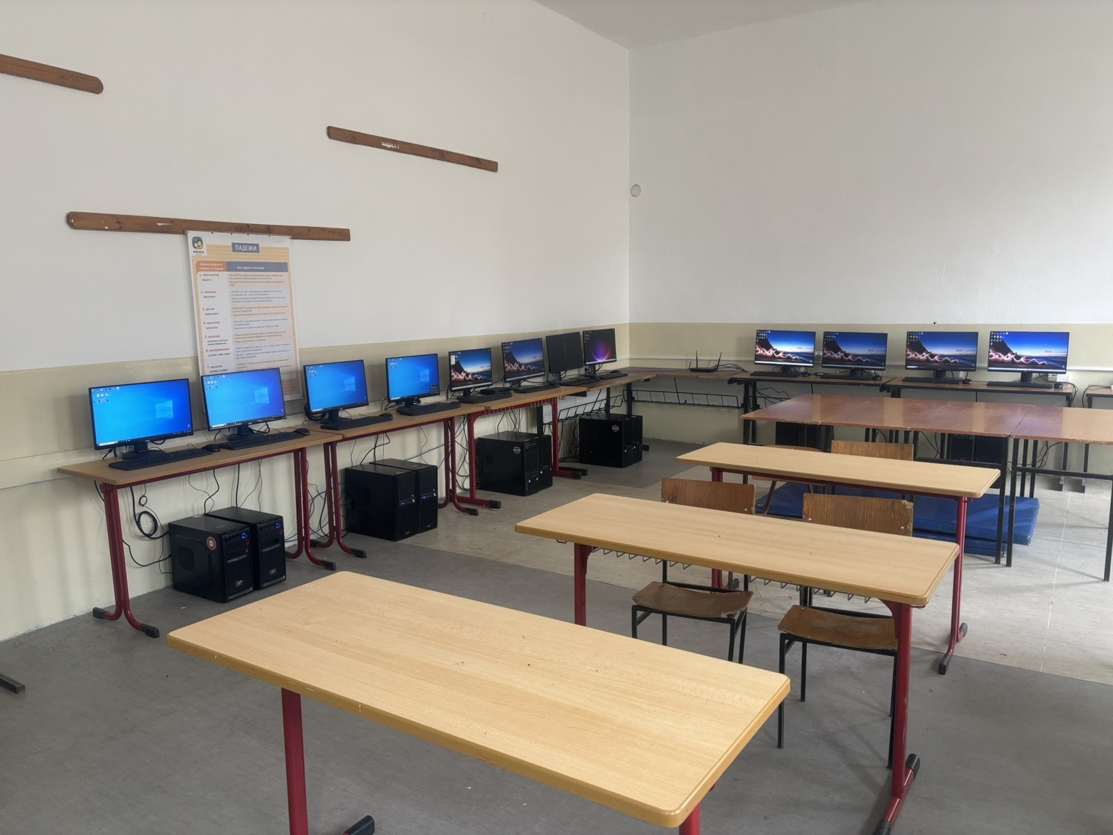 Prvi korak u sređivanju bio je krečenje učionica i hodnika, kako bi uneli vedriju atmosferu, osvežili i dezinfikovali enterijer. Osim toga, zamenili su ulazna vrata i vrata na jednoj u učionici, što je unapredilo bezbednost i očuvanje toplote. Sve to je na kraju upotpunilo kačenje edukativnih postera na zidove hodnica i učionica.