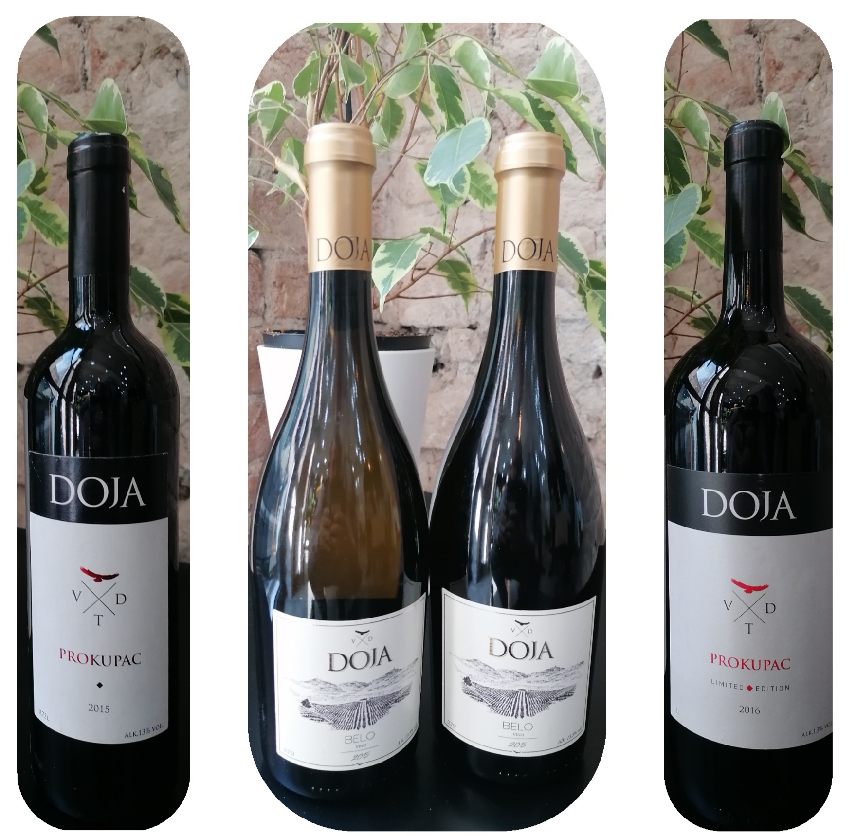 Vinarija DOJA je porodična vinarija, smeštena na blagim padinama u podnožju planine Jastrebac na nadmorskoj visini od 470m, gde su razlike između dnevnih i noćnih temperatura i do 15 stepeni u periodu sazrevanja. Doja predstavlja spoj tradicije, porodičnih vrednosti i savremenih znanja. Kvalitetan i posvećen rad prepoznat je i na međunarodnom nivou, što je donelo mnogobrojna priznanja i nagrade. Doja Prokupac, vino koje se nalazi na licitaciji, prvo je vino iz Srbije koje je osvojilo nagradu „BIWC“ trofej za najbolje crveno vino od autohtone sorte na Balkanu.